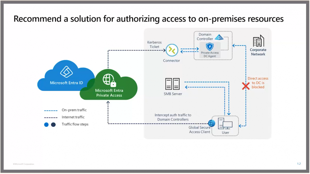It shows how Microsoft Entra ID works along with Microsoft Entra ID private access. So you’ll need to know what private access is and you’ll want to know how global secure access clients allow your users to connect to resources. So practice that.