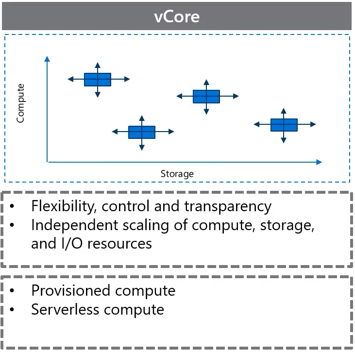 And then we have the vCore model, which gives you a lot more flexibility and greater control. It lets you control scale, compute, and storage independently; you’ll need to know that. And you want to know that the two provisioning types that you have are provisioned compute, where resources are always allocated and serverless compute, which automatically scales based on usage and pauses during inactivity which saves you costs.